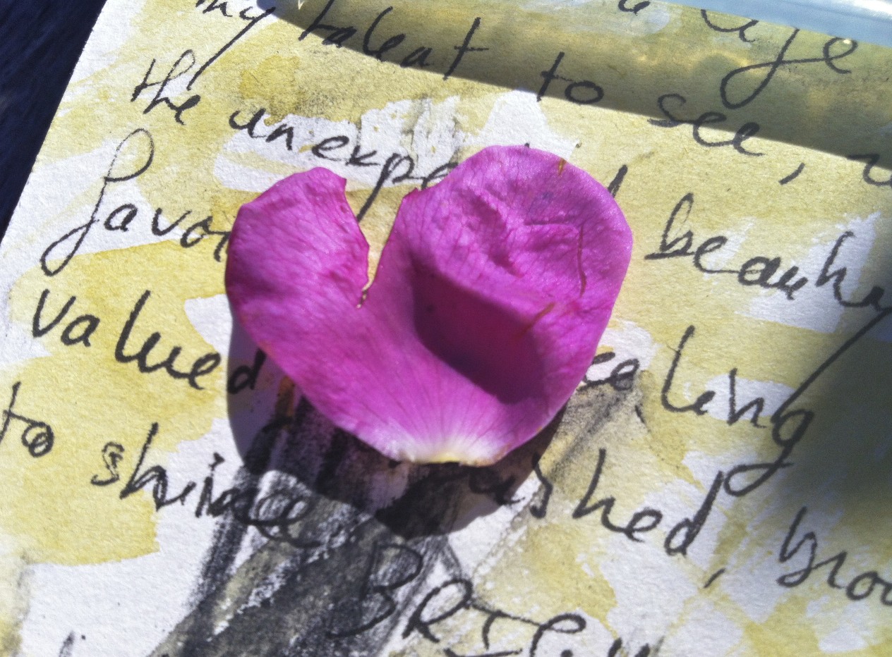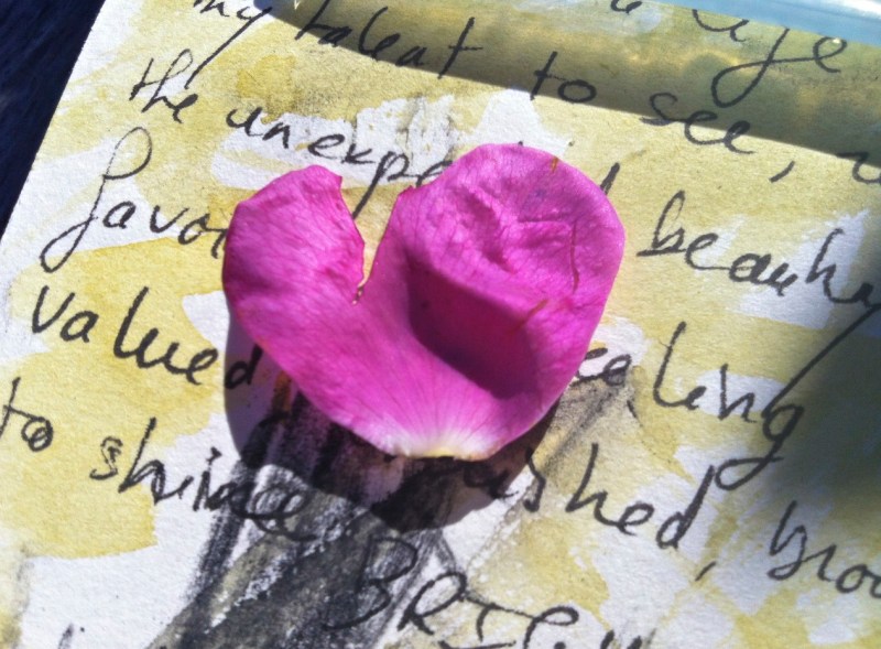 picking up a fallen rose petal