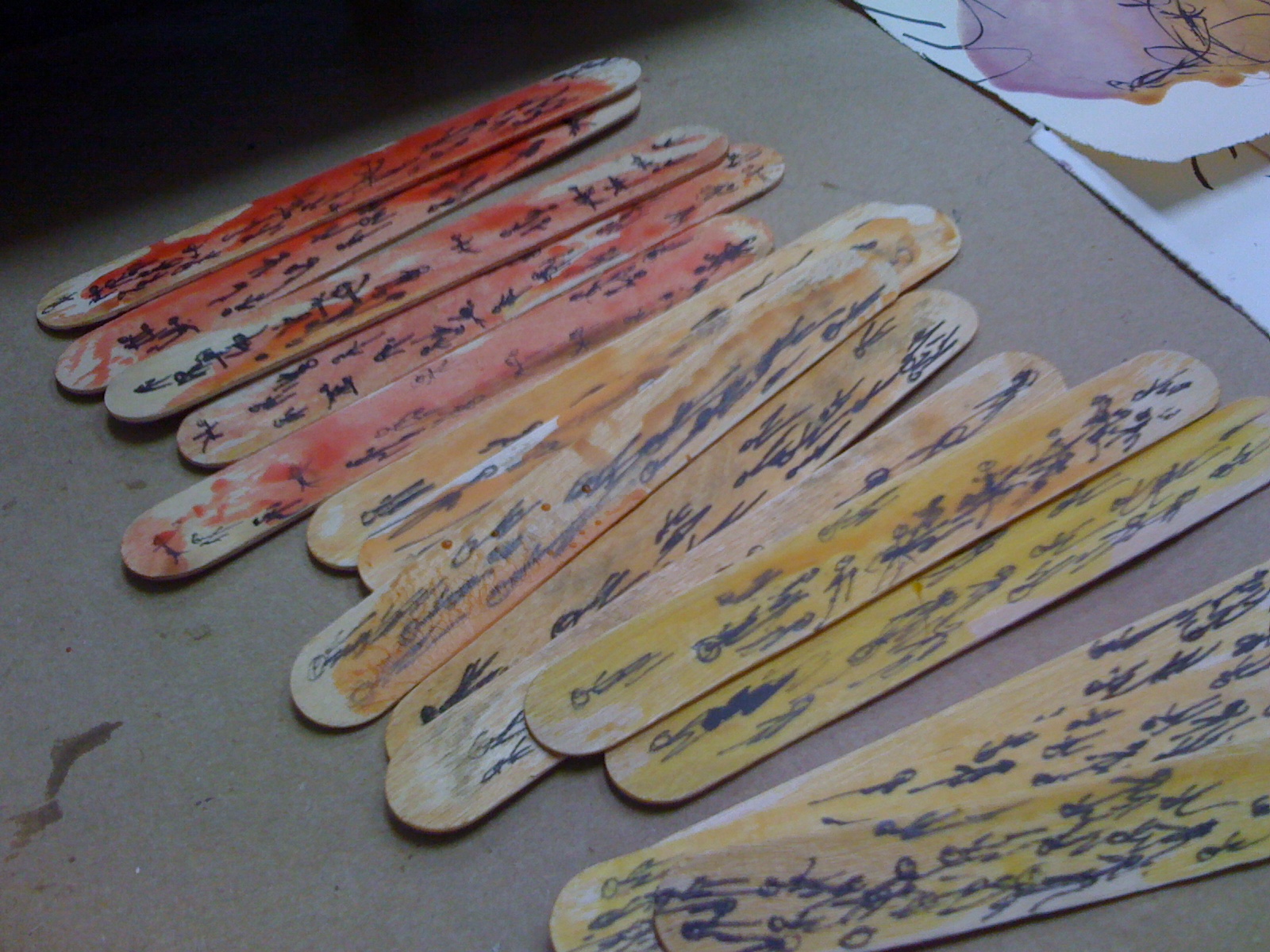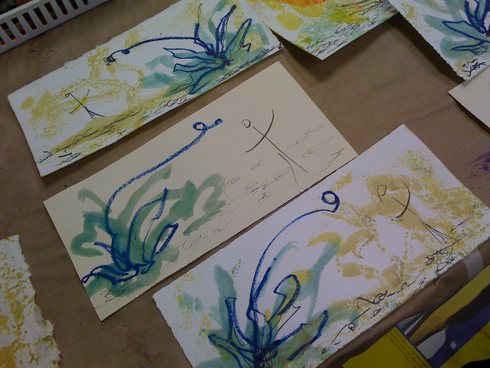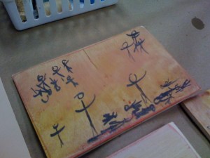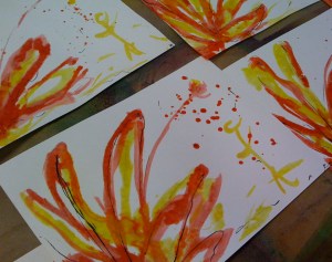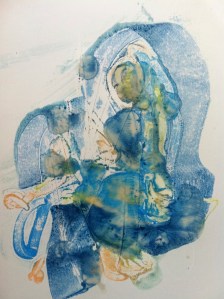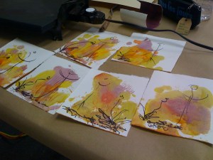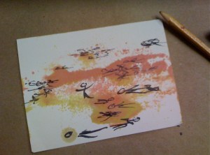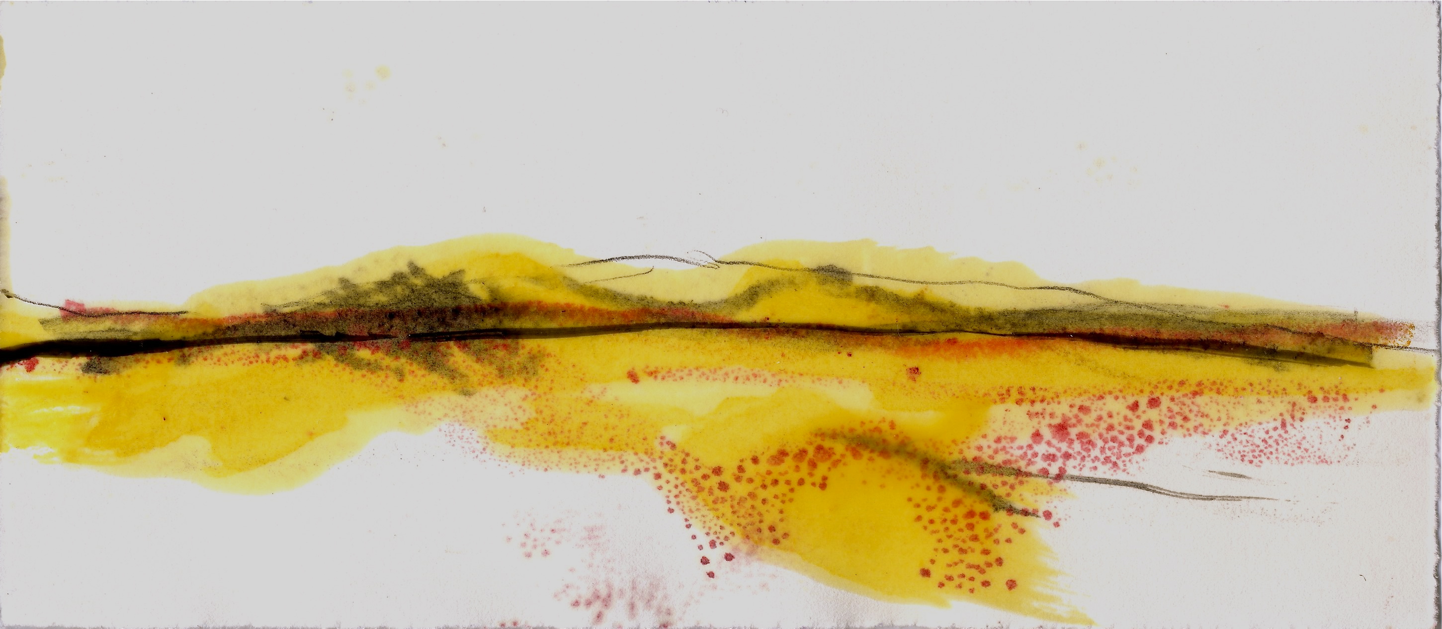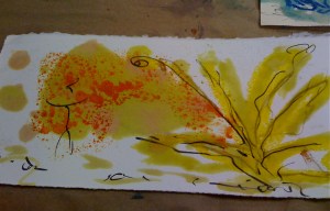 It is a process that continued, grew, beyond time and place. Back in the encaustic studio, “Harvest of the Heart”, emerged from pools of molten wax, spreading and sinking into paper – along with a touch of pen.
