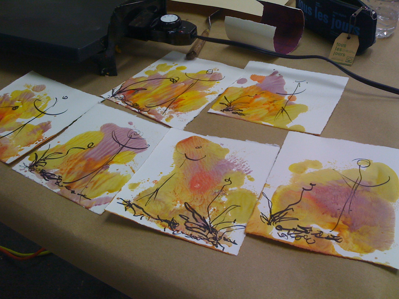 In hand, and in my gesture, I was following my heart, connecting to memories of my childhood spent in the countryside in my native France. Those memories were more vivid at this point time as I had moved to Texas where the land was flat, arid and felt very foreign to me. Suburban life added another layer of challenge to the experience… Here I was, on this retreat in the Eastern Townships in Québec, in a natural setting that brought all those feelings to the surface. Ink and feather in hand I was retracing, and recalling my roots, steeped deep in nature.